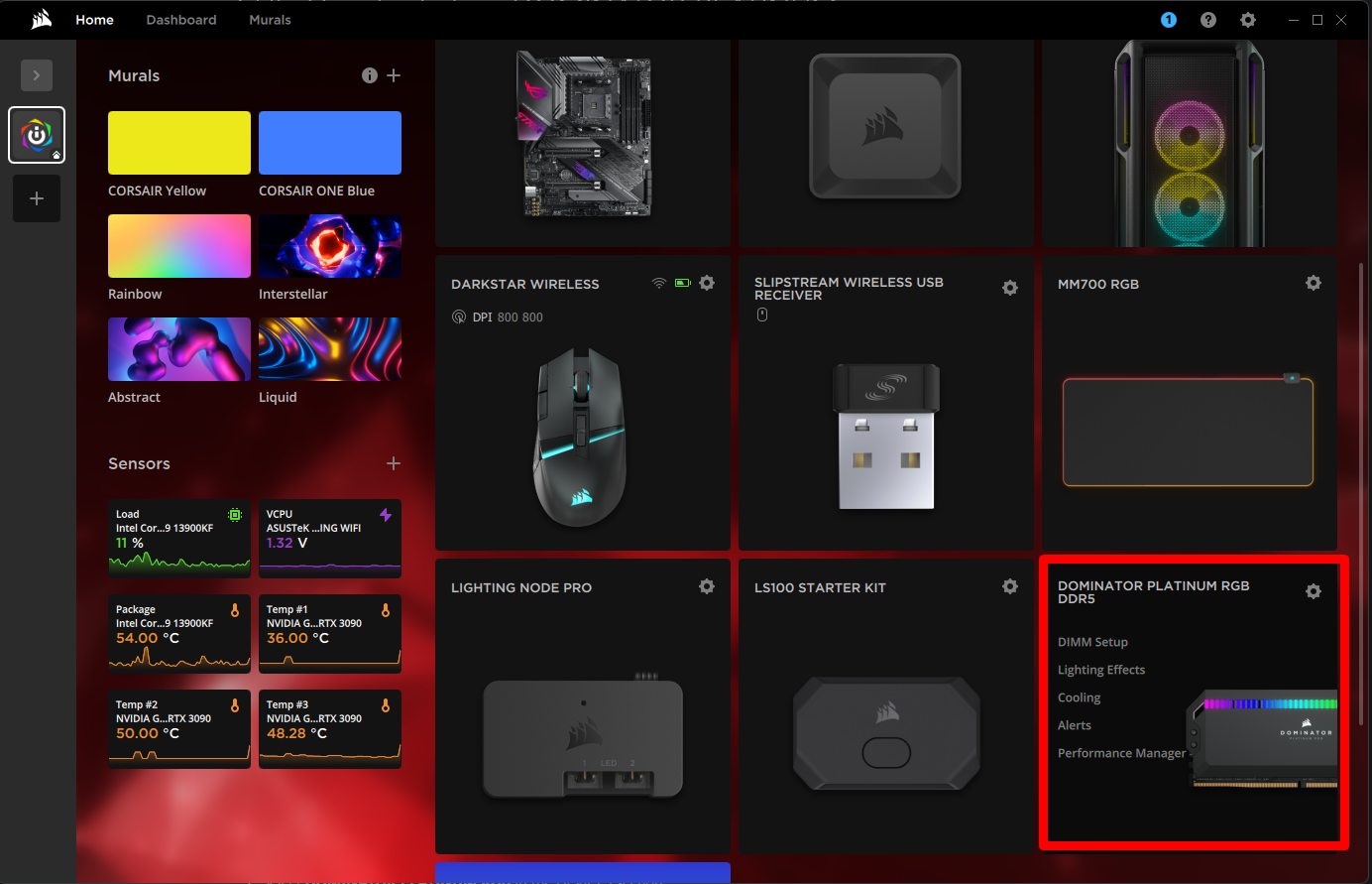 Sobald Sie Ihren DOMINATOR PLATINUM RGB und iCUE installiert haben, können Sie in iCUE folgende Einstellungen vornehmen: