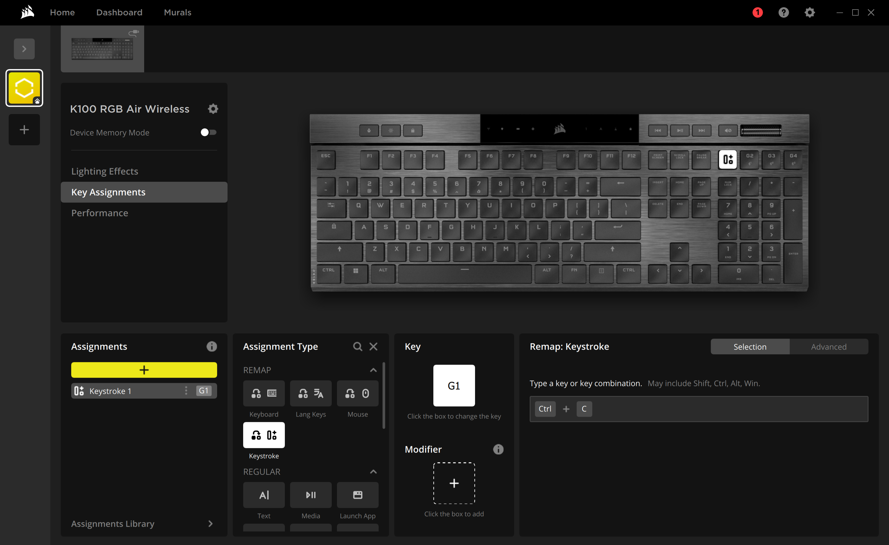 NOTE: Stellen Sie zunächst sicher, dass iCUE sowie die Firmware Ihrer Tastatur jeweils auf die aktuellste Version aktualisiert wurden um mögliche Komplikationen zu vermeiden.