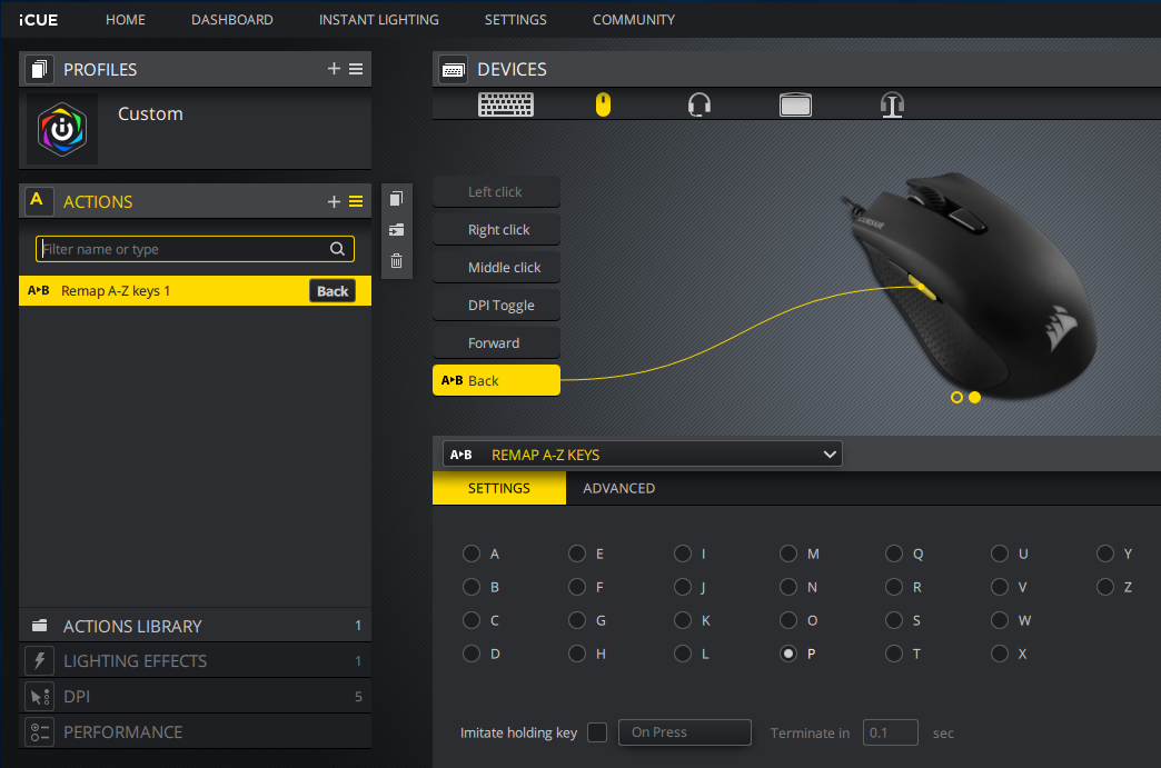 Para lhe dar um exemplo de como atribuir botões do mouse, vamos guiá-lo sobre como atribuir a tecla "P" ao botão de voltar de um mouse.